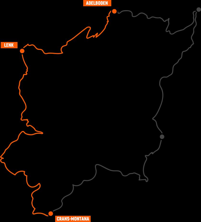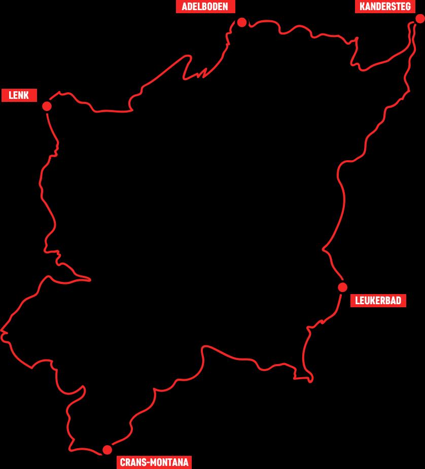 Start in Adelboden im Herzen des Kantons Bern mit Ziel in CransMontana im Kanton Wallis.
