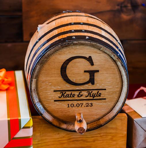 Kyle and I belong to a whiskey Cask Club where we make our own whiskey. Our first batch was old fashioned flavor and we names it after the dogs, “Blu Belle Whiskey.” Our card holder was an oak barrel that I ordered on Etsy. I had it personalized with our names and wedding date. We enjoy creating