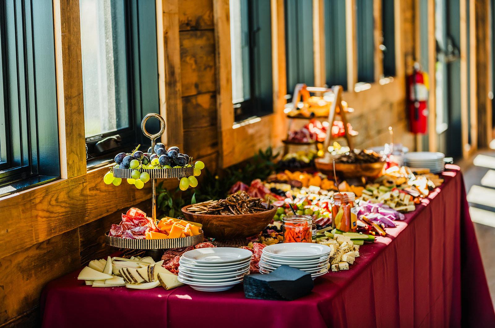 We ended up doing a buffet even though I didn’t want to. I didn’t like the concept of people waiting and watching a line. So, we had the buffet in the front room of Snowline that way no one was waiting and watching people as they went through. I did have a plated salad that was delivered to each person at the table. We had a menu printed that listed the salad, entrées, desserts, and late night snacks. I wanted the guests to be able to have a plan for the evening as far as food went. The back side of the menus had our custom logo.