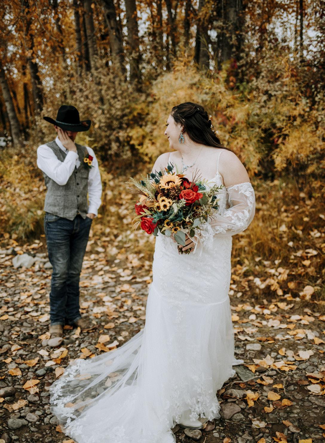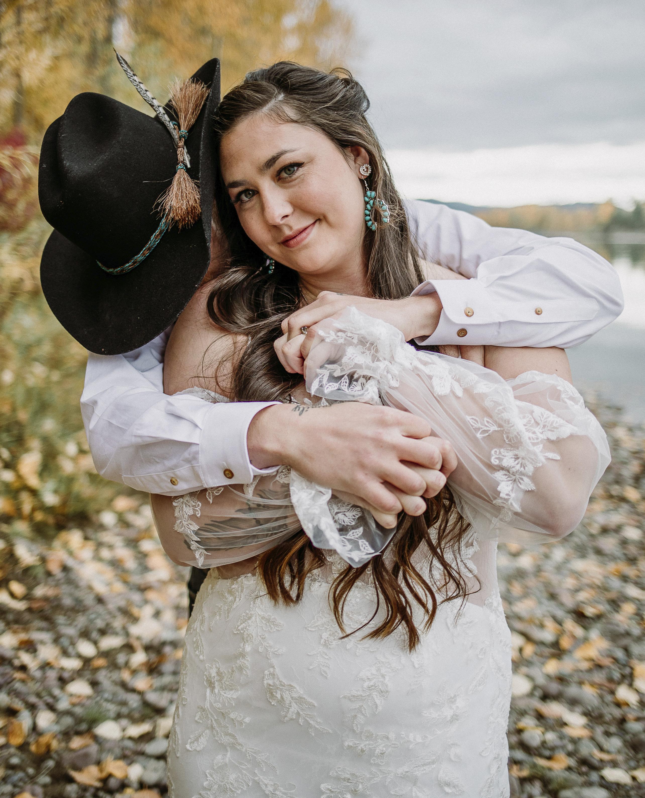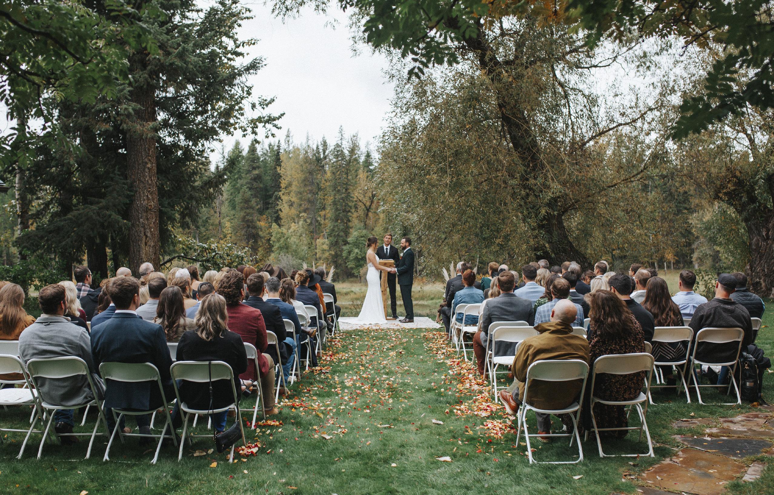 Funny story... we actually met at work! I was Travis’s boss at the time, but we didn’t start talking until after he left the company (no HR involved we swear.) The first time we got together, we met at the Remington in Whitefish. Before we met up, I emphasized that we were going as friends, and he wasn’t allowed to buy my drinks. When we got there, we talked for hours, and didn’t realize we had closed down the bar and the employees were waiting for us to notice so they could go home. After we went our separate ways, I think we both knew we were in trouble, and the whole “just friends” thing went out the window real quick. From there, we couldn’t go a day without talking or seeing each other. Our connection was so strong from the start, and just keeps getting stronger every day. The crazy thing is, neither of us wanted to get married in our lives... until we met the right person who made us feel safe and understood. The biggest thing for us was we wanted all of our family and friends to come together as one unit. There was no “groom’s side” and “bride’s side.” We both grew up with different family dynamics, and many of our friends we consider our family, and we didn’t want any separation of