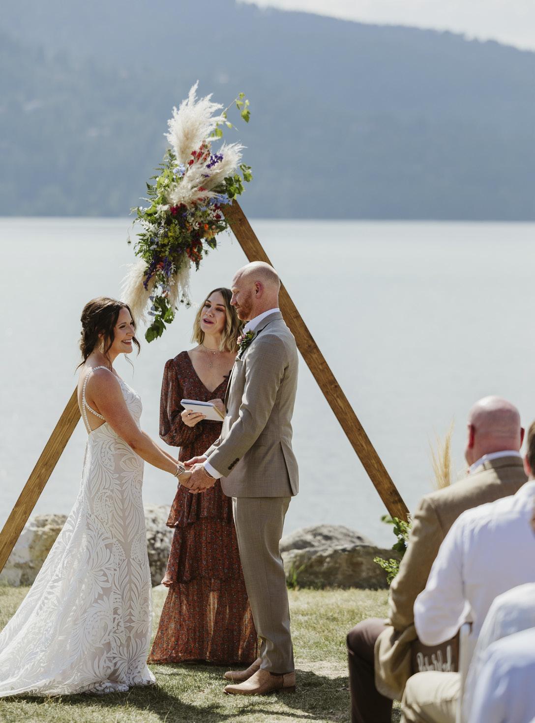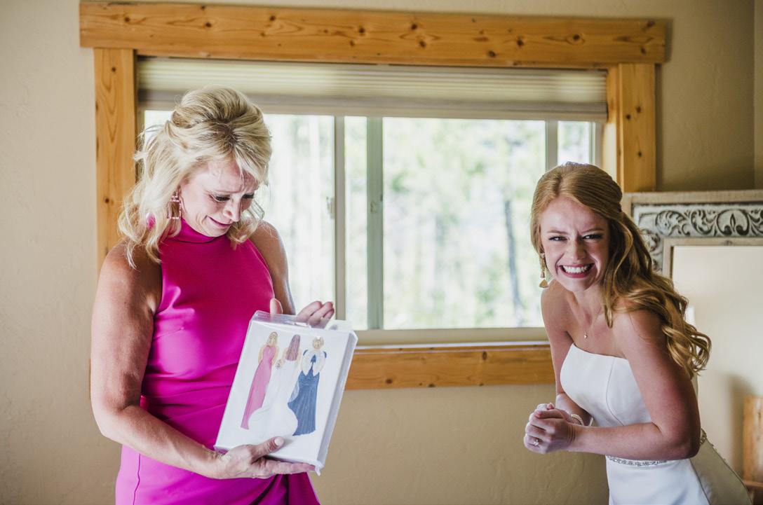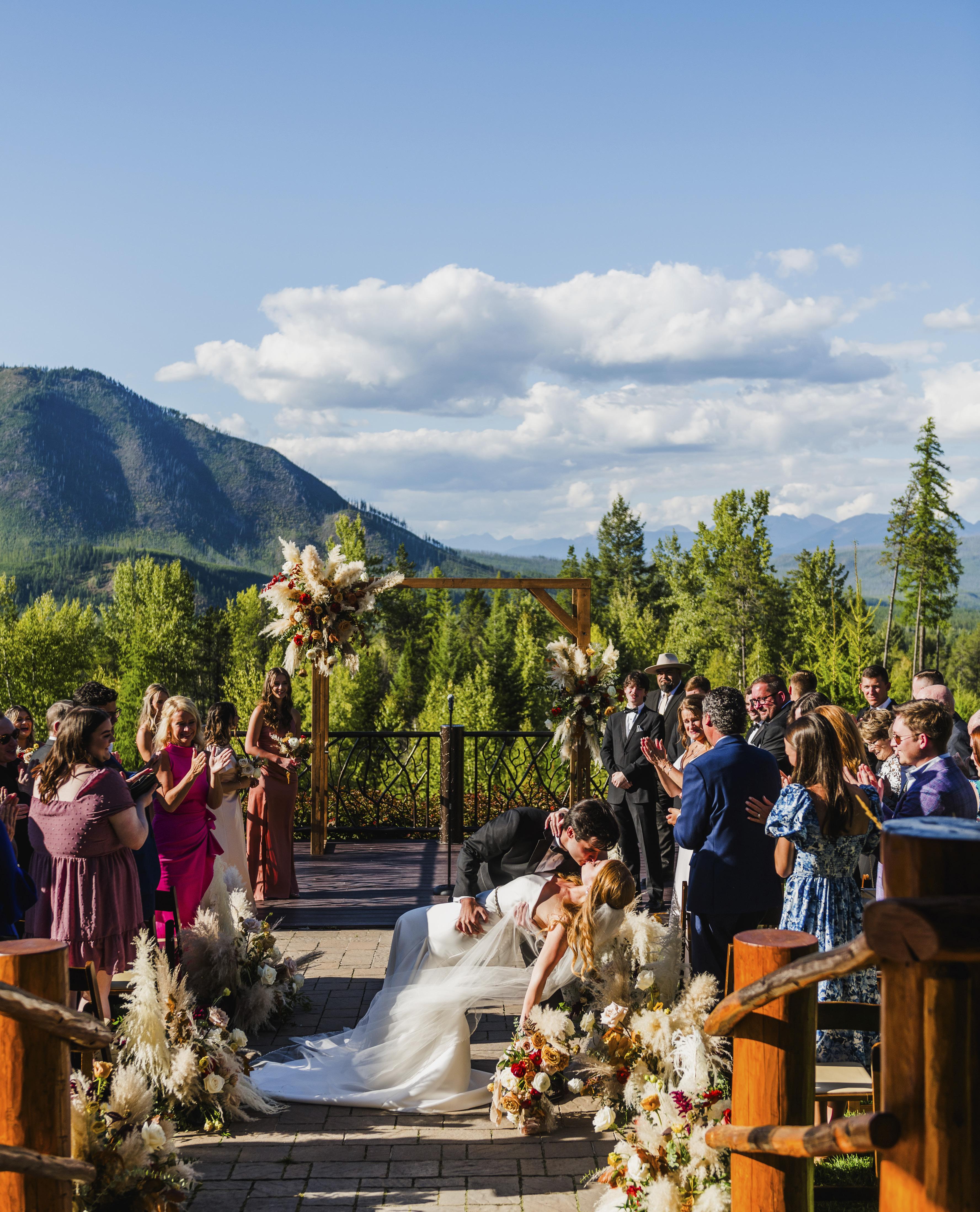 fit. The view at The Lodge at Whitefish Lake was stunning. I booked everything without visiting or meeting anyone first—just through research and phone calls. And it all came together more perfectly than I could have imagined. All of our friends were happy to travel from all over the country to celebrate with us. We had to postpone the wedding a year because our baby came first. So seeing both of our daughters as our flower girls down the aisle was such an epic tribute to all we had been through and accomplished together. It was a dream come true.