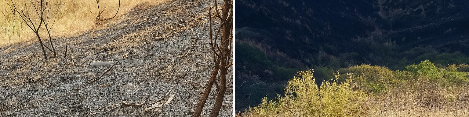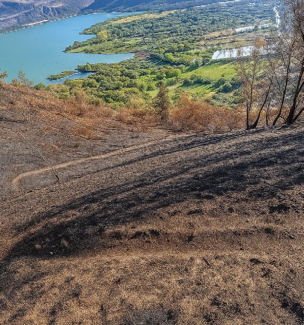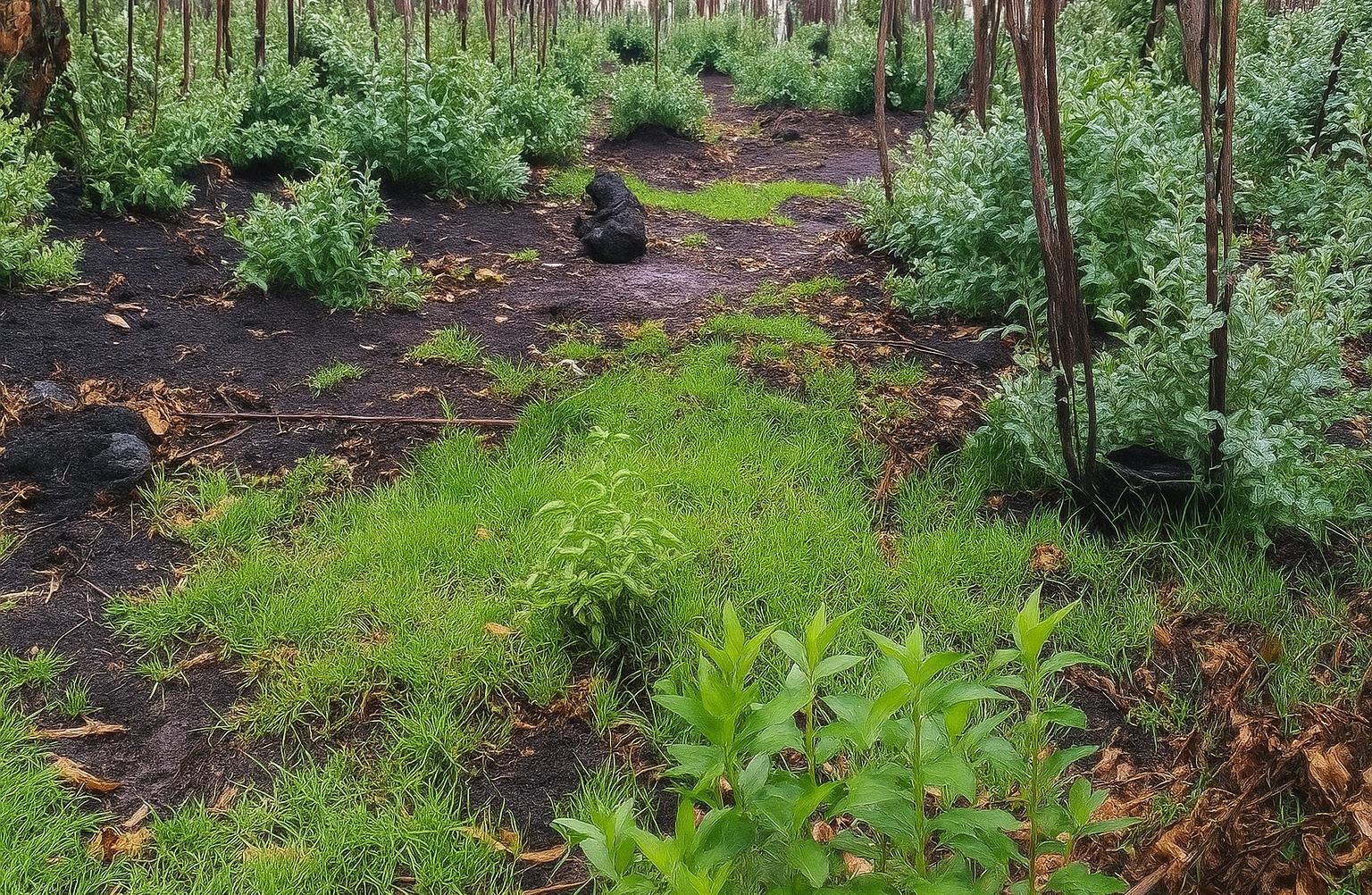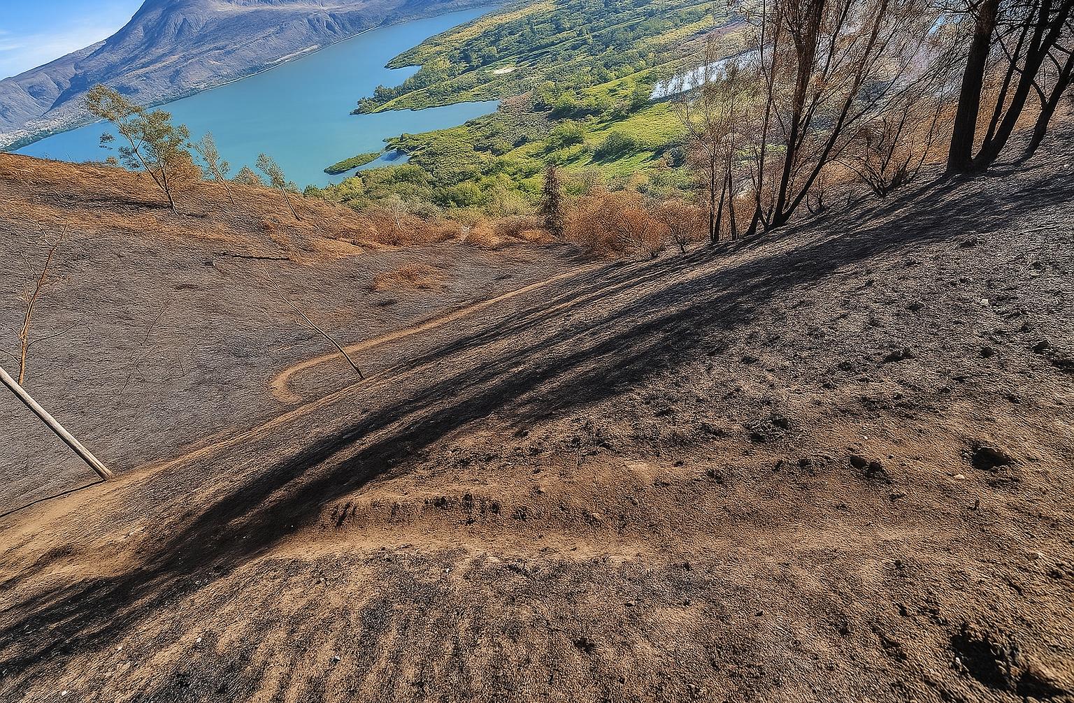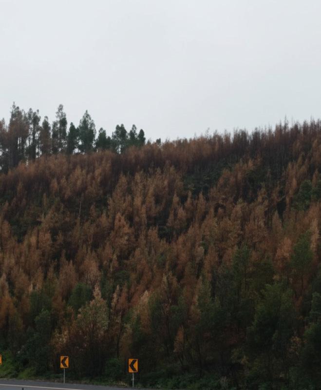 Comprende materiales como pastos secos, hojarascas, acículas de coníferas, humus, ramillas de árboles latifoliados, materia orgánica seca o en descomposición, frutos secos y tocones presentes en bosques en aprovechamiento o previamente aprovechados. Estos elementos constituyen una importante carga de combustible para los incendios forestales. Su impacto puede observarse en la Figura 1, que ilustra los efectos de incendios recurrentes registrados en 2023 en dos ubicaciones clave: junto al lago Yahuarcocha (a) y en el cantón Otavalo (b).