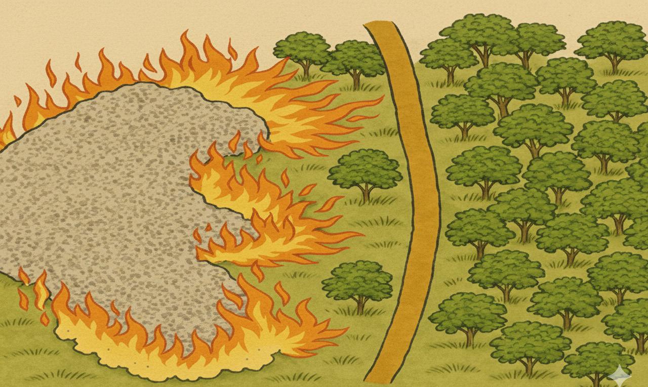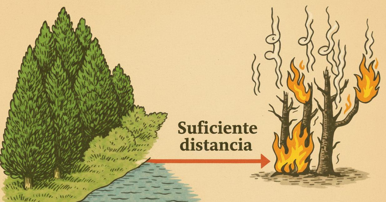 ● Zonas de seguridad: Un área de escasa vegetación que separa a zonas de cobertura vegetal de zonas residenciales o comerciales altamente vulnerables. Esta barrera es similar a una franja verde que en general es utilizada para otros propósitos como la agricultura, áreas de recreación, parques, o campos de golf.