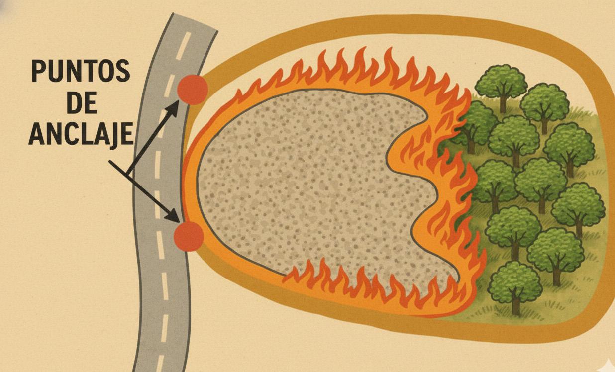 ● Quema por flancos: Técnica que consiste en encender fuego en líneas paralelas