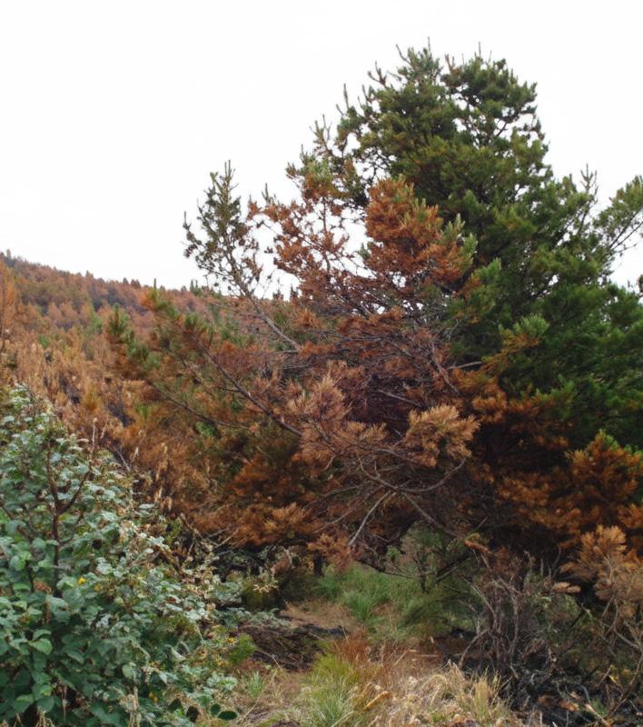 ● Superficie no arbolada: Si el fuego afecta solamente a los matorrales o pastos, incluyendo los situados entre los árboles sin dañar estos, aunque las copas puedan perder hojas o algunas ramas se considera la superficie como no arbolada y se distribuye en las clases siguientes: