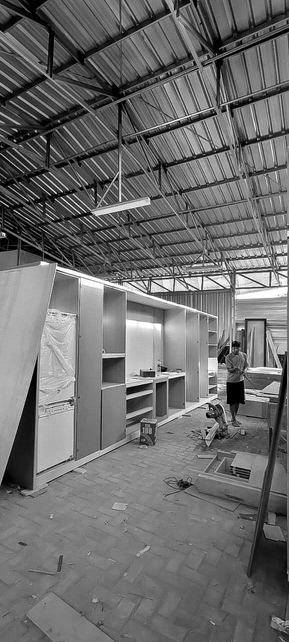 Pada tahap ini, furnitur maupun panel interior akan di produksi dan di instalasi di lokasi dengan memperhatikan kebutuhan lighting, dan penyesuaianMEPagarmenunjanghasildesainsesuaivisualisasi3d.
