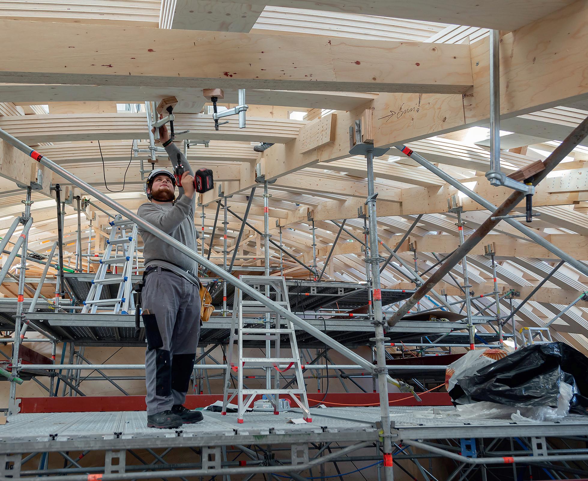 A very precise construction method was therefore developed to use local timber with a slightly higher moisture content, thus avoiding additional transportation.«