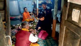 ทางรัฐบาลมีมาตรการให้เงินเยียวยาบ้างไหมครับ จ๋อมแจ๋ม: มีค่ะ อาชีพที่พึงพาการท่องเที่ยวจะได้รับการเยียวยามากที่สุด เช่น ไกด์น�าเที่ยว เจ้าของกิจการหรือพนักงานโรงแรมและร้านอาหาร เป็นต้น โดยการได้รับเงินเยียวยา คนเหล่านันต้องท�างานแลก เช่น เป็นกรรมกรก่อสร้าง หรือช่วยขนของจากรถบรรทุก เนื่องจากแรงงานชาวอินเดียถูกส่งกลับอินเดีย ทั งหมด แต่งานก่อสร้างอาคาร ถนน การเชื่อมต่อไฟฟ้า หรือท่อประปา หรือการขนส่งสินค้าที่ใช้ในชีวิตประจ�าวันยังคงดาเนินต่อไป ทางรัฐจึงพยายาม ใช้คนภูฏานมาท�างานเหล่านี้ ซึงปกติเป็นงานที่คนในเมืองหลีกเลี่ยงที่จะท�าค่ะ ติงติง: รัฐบาลภูฏานมีมาตรการที่จริงจังในการแก้ไขปัญหาและท� างานอย่าง ต่อเนื่อง มีมาตรการดูแลเยียวยาประชาชนและผู้ประกอบการด้านการท่องเที่ยว ที่ขาดรายได้ มีการเปิดรับสมัครและอบรมส� า หรับผู้ที่สนใจเป็นอาสาสมัคร (Desuup) เพื่อบริการและดูแลประชาชนในช่วงระบาดของ COVID-19 ซึงจะได้ 48