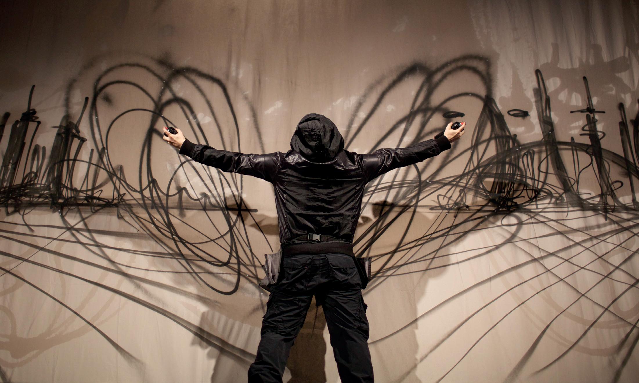 Cuando pinto tengo la sensación de libertad, como si estuviera volando, danzando, bailando, me siento libre, con una mano, con dos, con los pies, con el cuerpo. Para mí el aerosol o