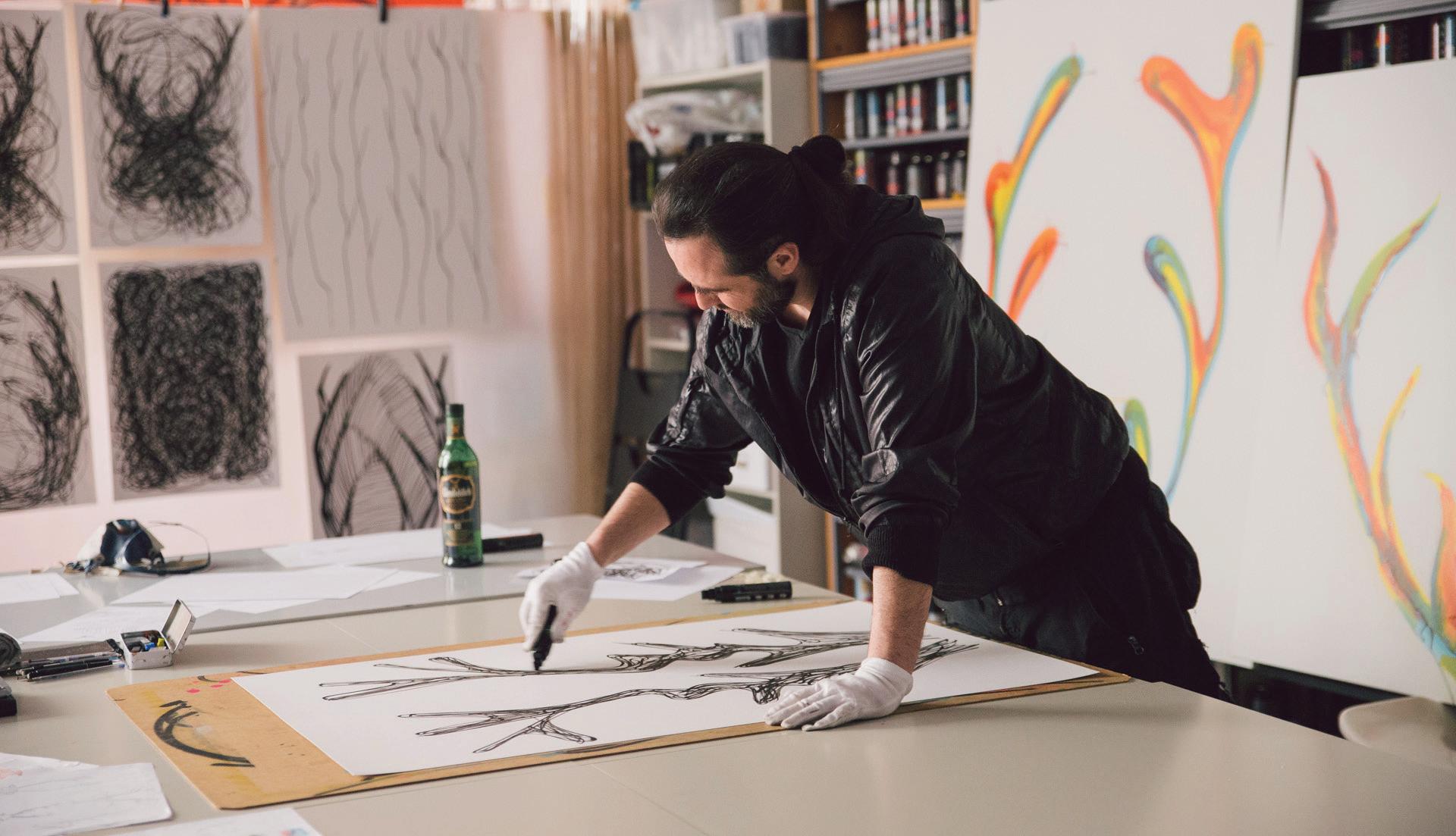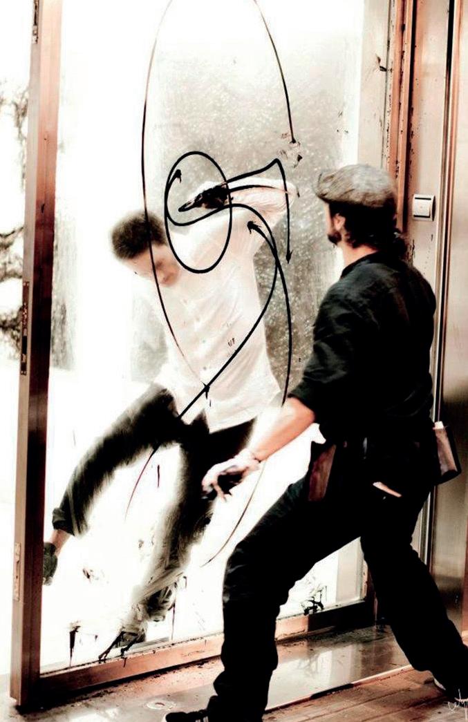Mi trabajo tiene mucho que ver con la escena y con la danza. He trabajado con la Compañía Nacional de Danza, con el Ballet Nacional de Portugal… Me dicen muchas veces que cuando pinto es como si hiciera danza contemporánea. A veces empleo también la calle como escenario.