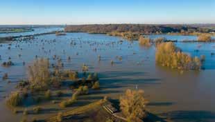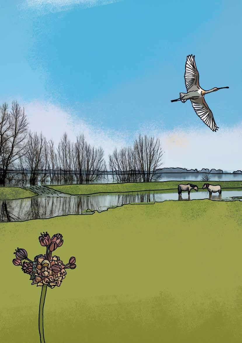 Hoogwater is een indrukwekkend fenomeen, dat zich ook de afgelopen winter verschillende keren voordeed. De rivier verandert het omringende land in een glinsterende watervlakte. Een paar dagen, een paar weken misschien. Dan stroomt het water weer terug, in de oude bedding. Prachtige dynamiek voor de natuur. En een vraagstuk voor de mens – zeker in de toekomst.