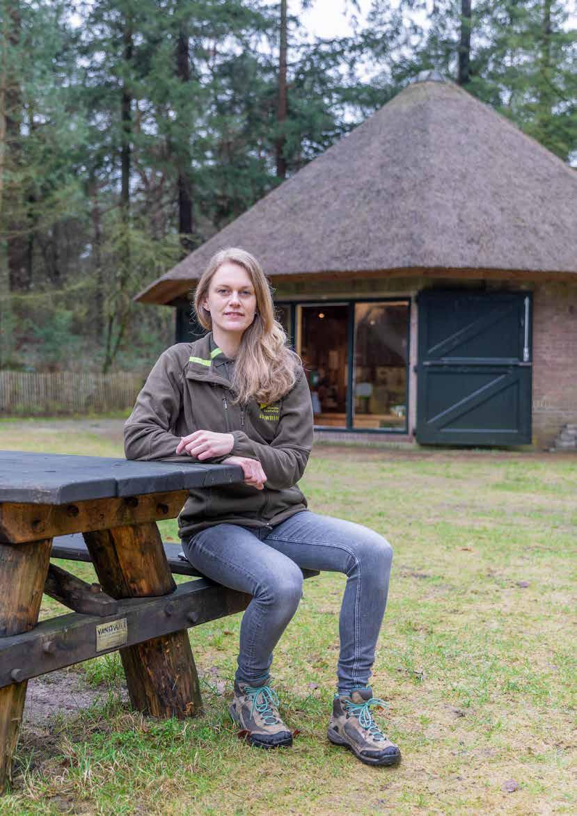 Waar 150 jaar geleden de schapen op stal stonden, mest producerend voor de akkers, ontvangt Ilona als gastvrouw van Utrechts Landschap cultuur- en natuurliefhebbers met een kop koffie en een praatje, en dat doet ze al negen jaar lang. Dan vertelt ze natuurlijk over de schapen die onderdeel zijn van het natuurbeheer en helpen de heide open te houden. Net zo lief steekt ze van wal over de broedende havik, heb je hem horen schreeuwen? De zwarte specht, de raaf. Er is veel om naar uit te kijken als je stil gaat staan en je oren spitst. ‘Ik probeer mijn eigen enthousiasme over te brengen. Dat is het leukste: mensen enthousiast maken, ze zien genieten en zo iets betekenen voor de natuur.’