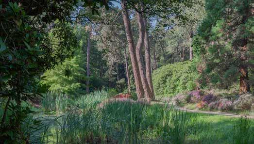 schoongemaakt. Verder vallen de opgeknapte bruggen en hekwerken op, die het gebied een extra parkachtig uiterlijk geven. Maar het meeste werk is gaan zitten in de beplanting, zegt Maarten: ‘We hebben heesters gesnoeid, verschillende soorten varens geplant en heel veel onderhoud aan de heidesoorten verricht. Dat begin je nu pas echt goed te zien.’