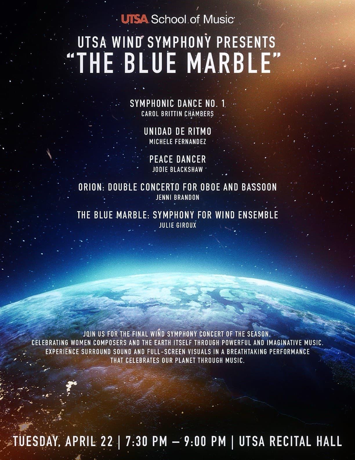 Our program tonight is called The Blue Marble, and I want to start by saying what an absolute privilege it has been to prepare and perform this music with these remarkable students. This concert is special for a lot of reasons.