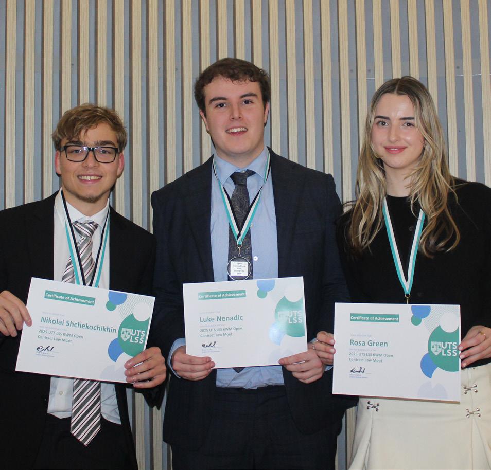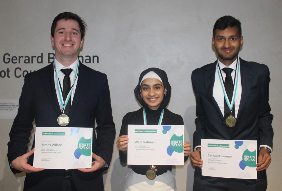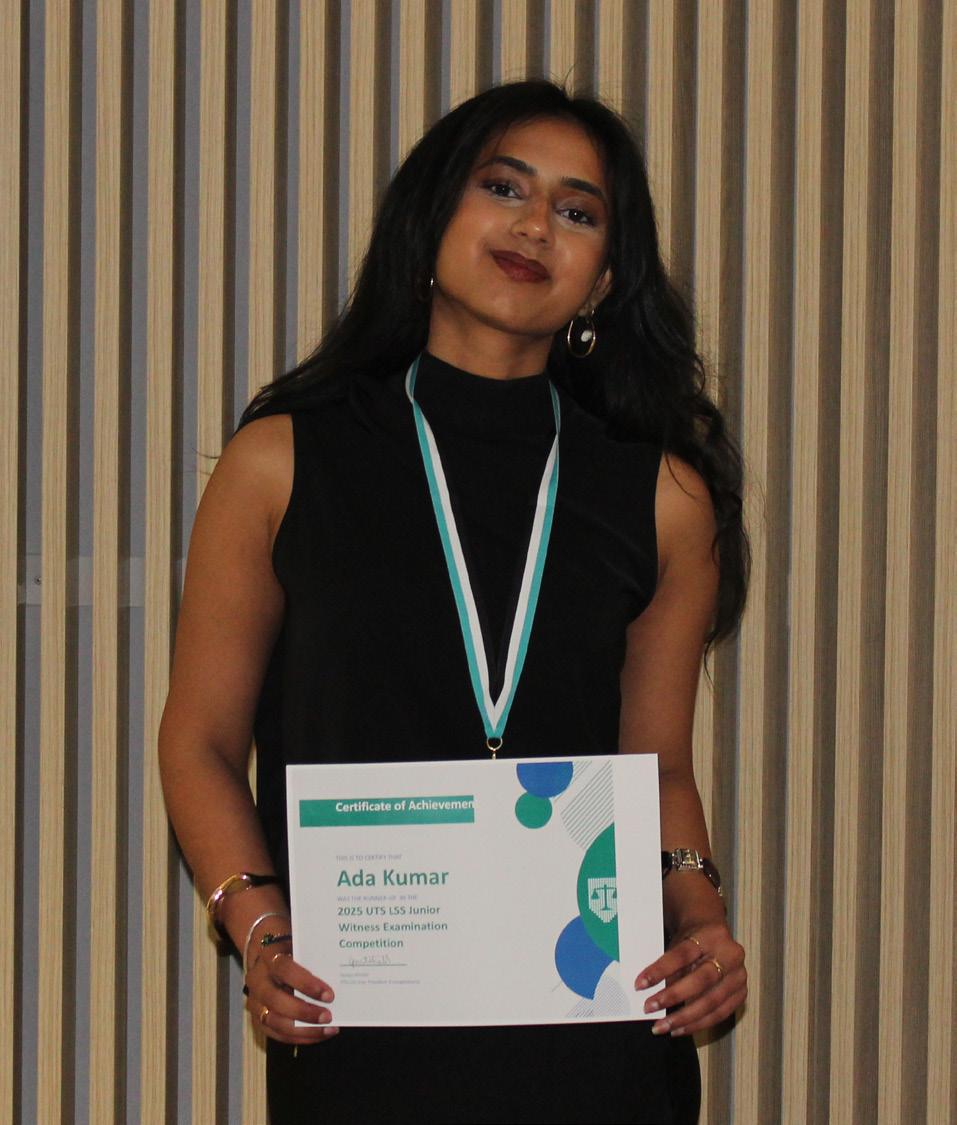 2025 Junior Witness Examiner of the Year / 2025 UTS LSS Junior Witness Examination - Semi Finalist / 2025 UTS LSS Junior Bail Competition / 2025 UTS LSS King & Wood Mallesons Open Contract Law Moot / 2025 UTS LSS Clyde & Co Gauntlet Competition / 2025 UTS LSS Ashurst Open Commercial Law Moot