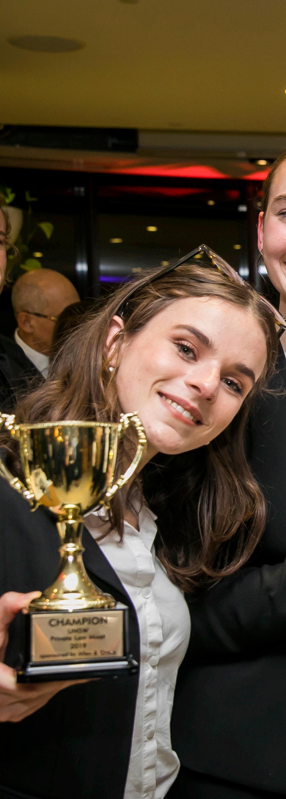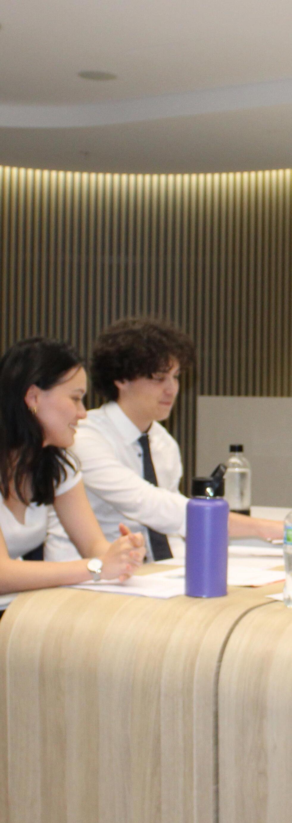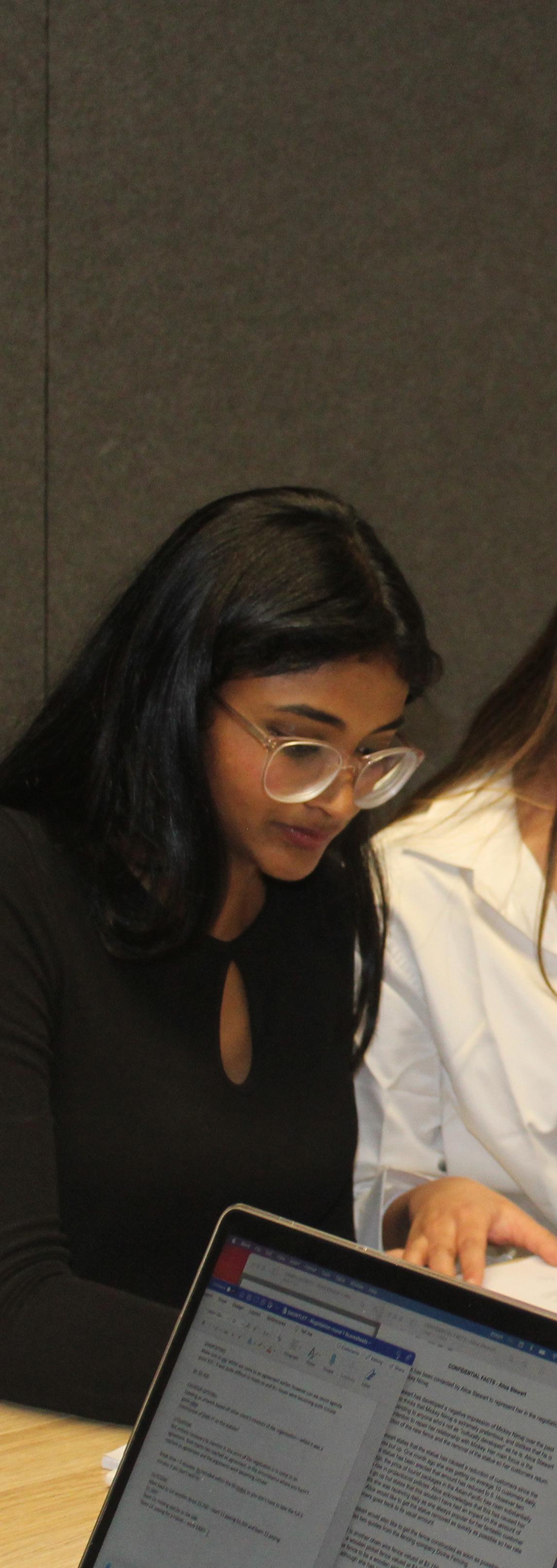 What separates good competitors from great ones? There is one trait that all great mooters have in common, and that is attending the Mooting Mentoring Program. Many might suggest it’s strong speaking ability, ironclad written submissions, or even holding it together under pressure, but no - studies have shown that participation in the MMP, and EVERY Junior Moot, directly correlates with the most grand legacies in Mooting. But really, if you’re a first or secondyear law students, Mooting can do wonders for your journey through your law degree. You will find yourself becoming an eloquent speaker, an effective legal researcher, a fierce debater, and you will bolster your academic success by practically applying your studies in this fun and competitive opportunity. You will also make some extremely valuable personal and professional connections. Mooting really is an opportunity that, once you give it a go, you will never look back. I look forward to meeting many of you in the big year ahead for Junior Mooting!