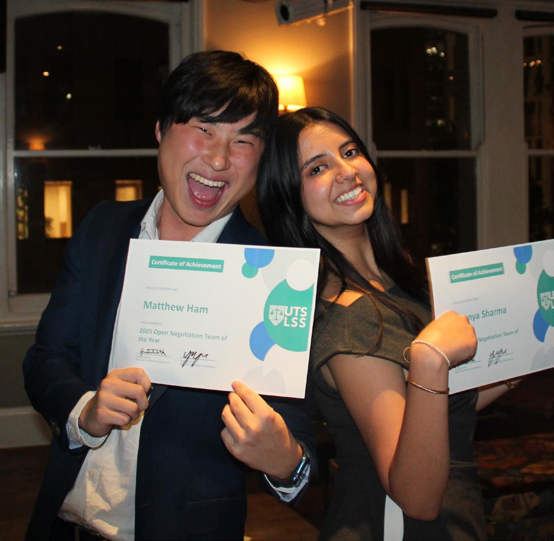 Rosalia Bautista and Zachary Boswell Runners up of the HSFK NLU Delhi International Negotiation Competition 2025, Winners of the UTS LSS Maddocks Intervarsity Negotiation Competition 2025