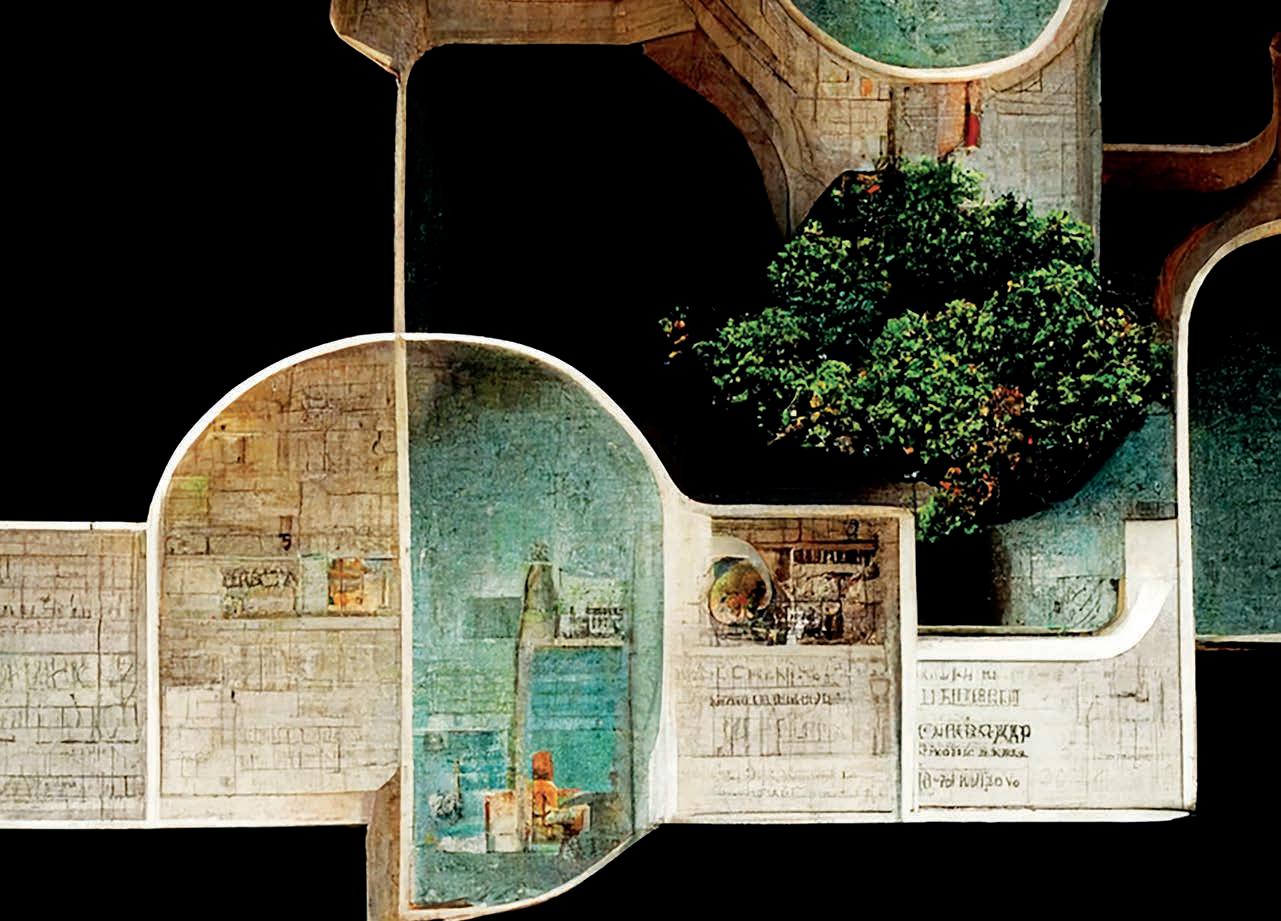 COVER Roofscape design by Kory Bieg with Midjourney AI, 2022.