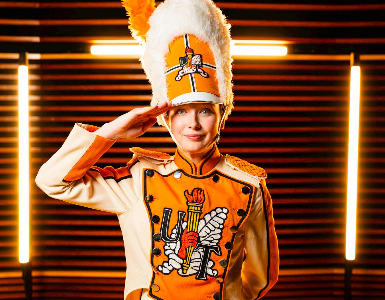 Game days aren’t complete without “Rocky Top” blaring through Neyland Stadium, and the band helps that atmosphere come to life. Junior Dobrescu helps assist Flenniken, as well as lead the Vol Walk.