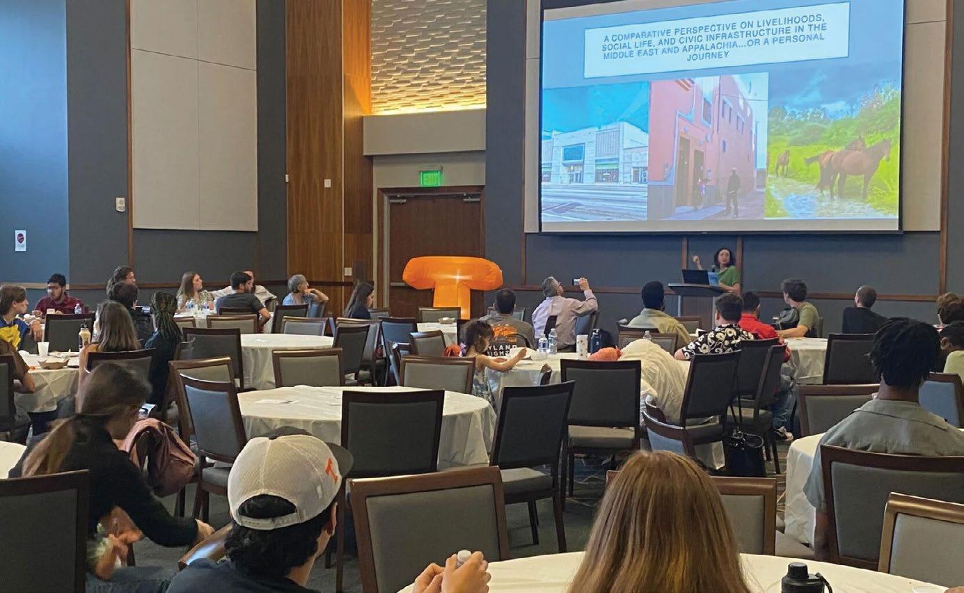 Following the trivia game, University of Kentucky Associate Professor Karen Rignall stepped to the podium to discuss the surprisingly similar relationship between communities in the mountainous regions of Appalachia and the Middle East.