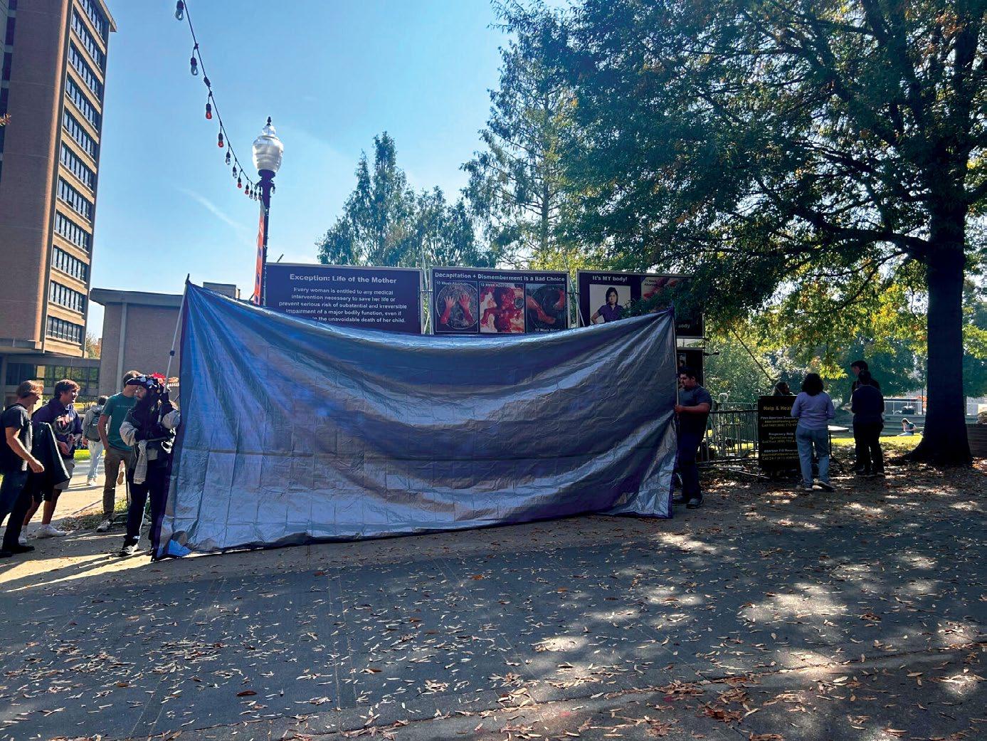 “I would much rather them do this in a more healthy way, like creating a booth that says, like, come talk to us about pro-life, or why you should be pro-life,” Melanie Fentress, a freshman exploratory major, said. “This is not the way to do it.