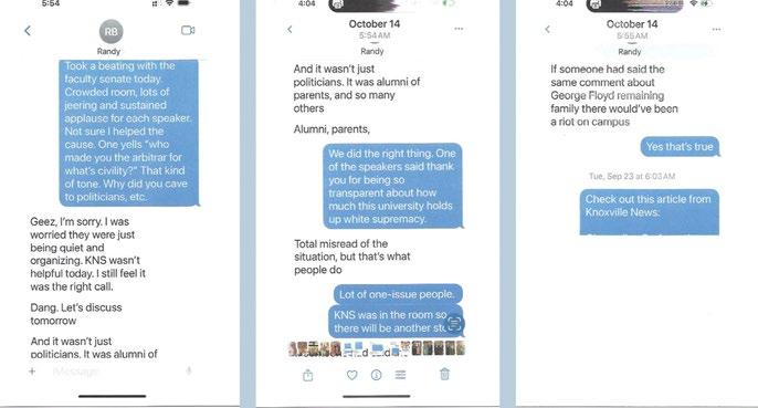 The Daily Beacon acquired text messages from Plowman and Provost John Zomchick in which Plowman said, “I’m holding out hope that it is fake and she didn’t actually do that.”