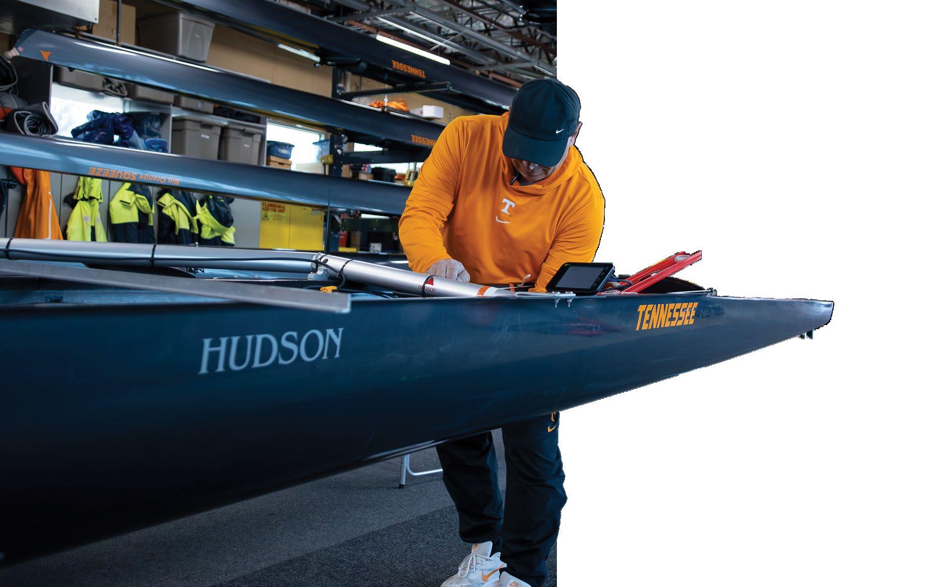 He’s calibrating the boats, installing equipment to track the athlete’s speed and power, while ensuring precision. Duffy is Tennessee’s boathouse director — a key component of the Lady Vols’ nationally ranked program.