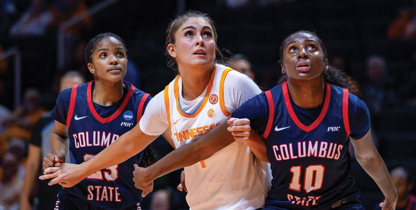 ranked recruit in the state with four-star Lauren Hurst. Hurst averaged doubledigit points per game in each of her three seasons on varsity. She also made the Tennessee State Writers Association AllState Team in both 2024 and 2025. She and her brother Grant Hurst are the first brother-sister duo to play basketball for the Vols at the same time.