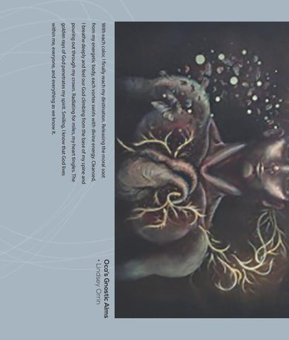 With each color, I finally reach my destination. Releasing the moral soot from my energetic body, each vortex swirls with divine energy. Cleansed, I breathe deeply and feel our God climbing from the base of my spine and pouring out through my crown. Radiating for miles, my heart tingles. The golden rays of God penetrates my spirit. Smiling, I know that God lives within me, everyone, and everything as we know it.