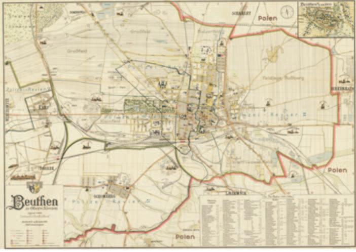 Beuthen in Oberschlesien – mapa z roku 1927 (z zasobów Cyfrowej Bibliotek Narodowej POLONA)