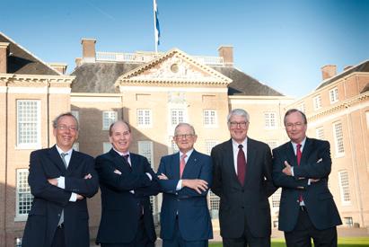 Vlnr: Dr. Hans van den Berg, Prof.dr.ir. Joop Halman, Prof.mr. Pieter van Vollenhoven, Prof.dr. Peter Boorsma en Prof.dr.ir. Olaf Fisscher