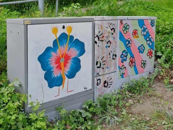 Työpajassa lapset saivat suunnitella ja maalata sähkökaappeja Hangon keskustassa.