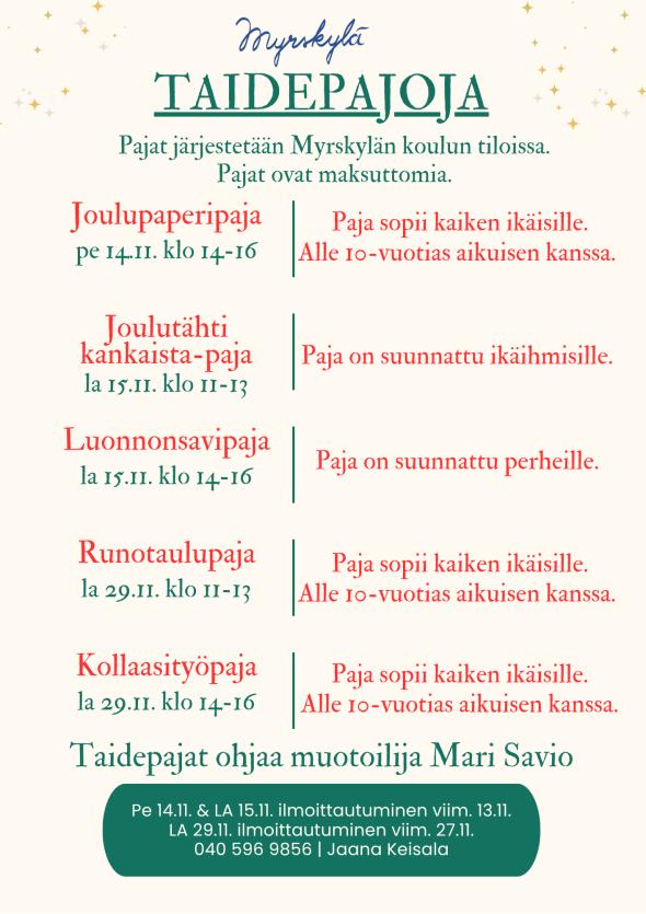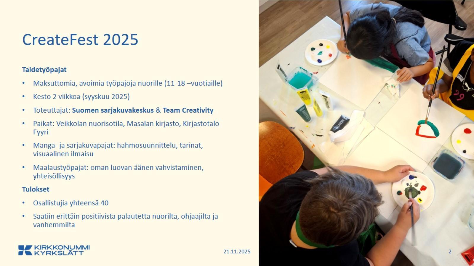 • Kaksi varjotyöpajaa, jotka toteutettiin yhteistyössä nuorisopalveluiden kanssa.