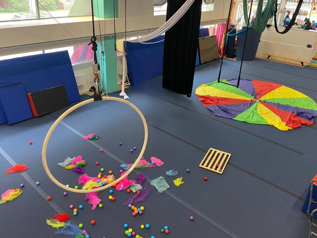 Työpajoissa tutustuttiin jongleeraukseen, isoon trampoliinin, ilma -akrobatiaan, tasapainoiluun sekä pari - ja ryhmäakrobatiaan ilmaisuharjoituksia unohtamatta.