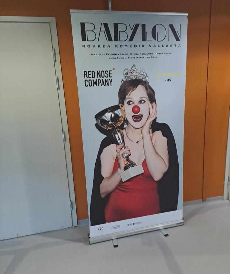 Valitsimme ehdotetuista tarjouksista Red Nose Companyn Babylon -esityksen.