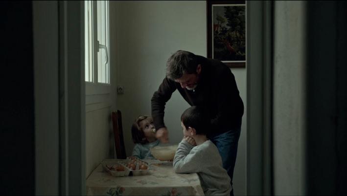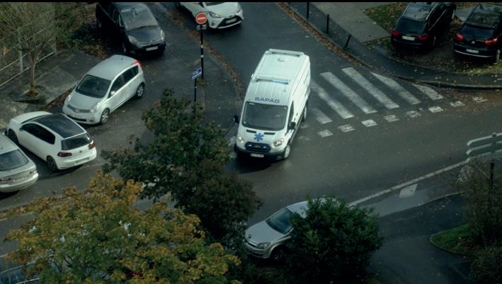By opening on this extended note of sorrow, RAZ structures the film as an elegy, setting the tone for what’s to follow. The death of M. Pons’s mother eventually comes to symbolise the demise of a certain idea of community. We discover that she was beloved among the men of the Temple Woods Gang, whom she used to regale with crêpes as children. They reminisce about her in a scene that begins with a downward tilt of the camera, from the top of an apartment tower to the pavement, where they are sitting in a row. This camera movement, repeated numerous times throughout the film, mirrors the gang’s trajectory after they pull off a lucrative highway robbery, presaging their inexorable fall.