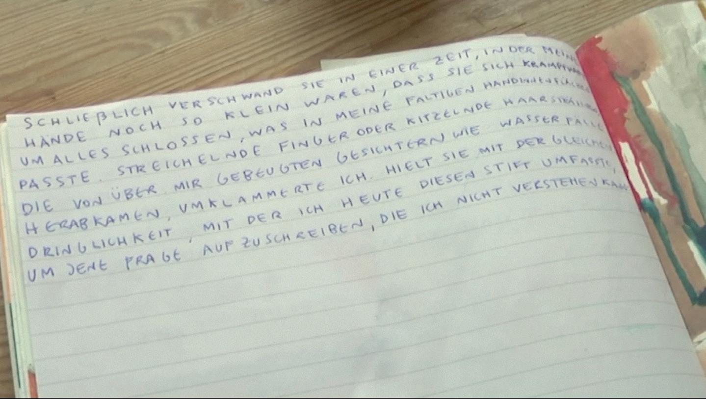 Als ich den Film ein zweites Mal gesehen habe, ist mir erst aufgefallen, wie auch die Filmemacherinnen innehalten, Räume öffnen, ihren Protagonisten Zeit und Aufmerksamkeit schenken und uns damit die Möglichkeit geben, das Gleiche zu tun. Es ist dabei kein zu unterschätzender Widerspruch, dass das Innehalten im fortlaufenden Zeitmedium Film, zumal in einer von Bildern bis zur Erstickung berauschten Welt, gesucht wird. Vielleicht könnte man das nur selten synchrone Zusammenspiel von Bild und Ton im Film auch so verstehen: Die Stimmen der Protagonisten halten die Bilder auf, die Bilder unterbrechen die Erzählungen. Was dann bleibt ist die Bewegung, die Franz Kafka laut Arendt nie finden hätte können, weil er vorher vor Erschöpfung gestorben wäre. Es ist das Rattern des Films in Kamera und Projektor, die Kraft, die es braucht, um die Kamera einzuschalten oder einfach aufzustehen, weiterzuleben und aus dem Gefüge der nur angeblich vorbestimmten Zeit auszubrechen.