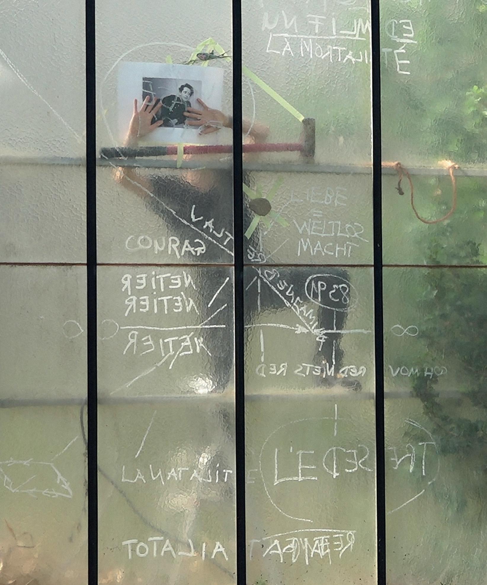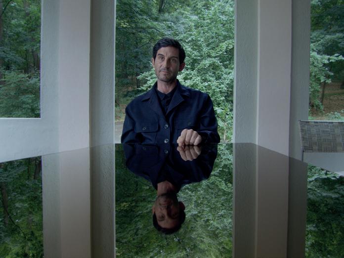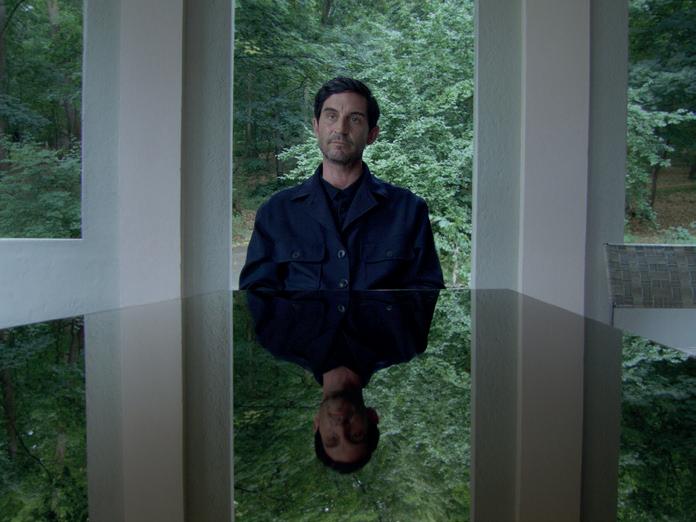 Dans le pavillon, Bach n’est pas seul assis à la table en verre. Sur les sept plans du film, il apparaît trois fois. Face à lui (ou du moins à la même table, les perspectives ne permettent pas de l’affirmer avec certitude) est assis l’interprète Cornelius Obonya. Lui aussi parle trois fois. Tandis que les deux parlent, le jour passe, la lumière décline, le vent se lève. Ils ne se parlent pas vraiment, ne sont jamais dans le même plan. Tous deux sont là pour ne pas que l’on associe un visage ou une voix aux crimes. Ce ne sont que des corps, et même cela n’est pas certain. Le film fonctionne un peu comme un dialogue platonicien ou une pièce de Samuel Beckett : on parle dans le vide, mais ce vide est la réalité, le présent ; le vide, c’est nous qui écoutons. La notion ressassée de témoignage gagne en extension chez Doborac : non seulement ceux qui rapportent leur récit témoignent de quelque chose, mais nous attestons de ce qu’ils disent. À quelques exceptions près (comme la déglutition du début), cette forme de représentation échappe à la force tentatrice des images. Ici, pas de remords, pas de supériorité affichée, pas d’éléments physiques en
