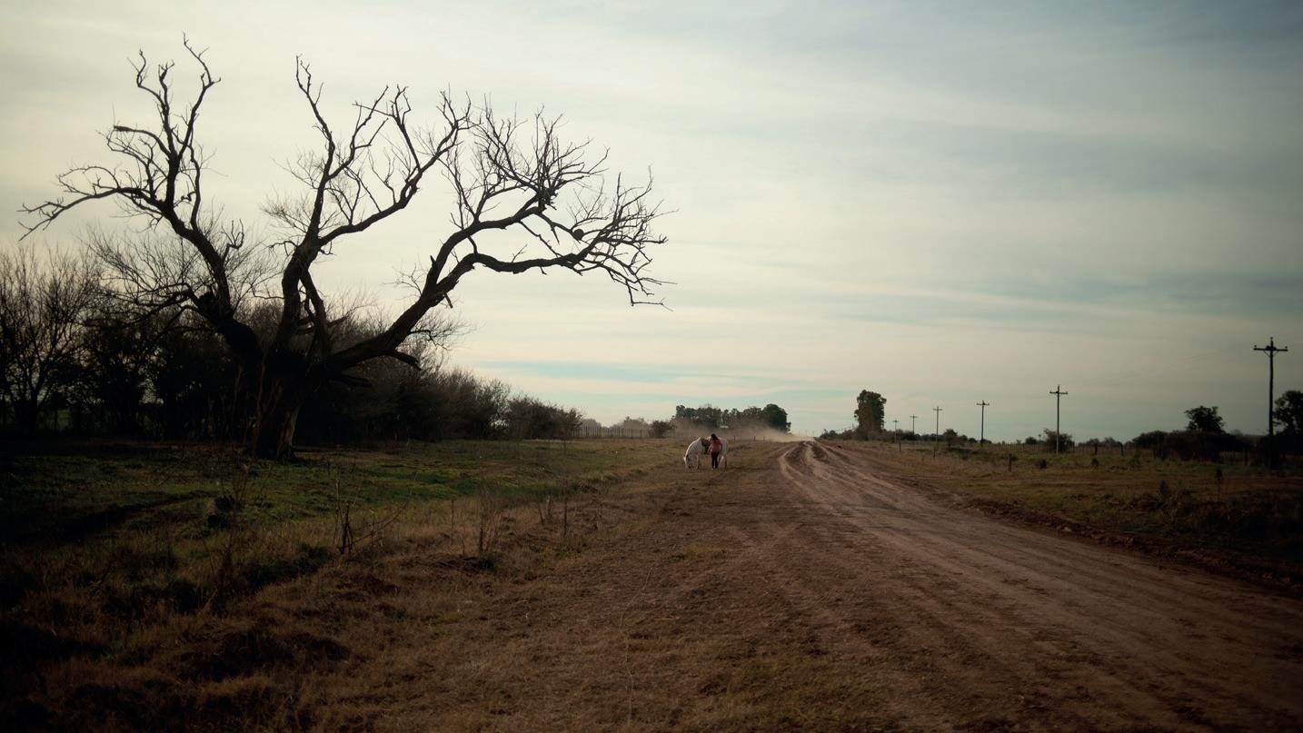The account has been given, the real story is over, but the film continues nonetheless. Laura leaves the car behind to set out on foot and there is no fitting music to describe the mood, just birdsong, crickets, mooing cows and clucking chickens, gauchos singing in the bar dressed like in a costume drama, the lapping of water under the bridge, the light has changed, the chill of autumn is here. Carmen walked these plains too, and back then and today no longer look so different; that Laura reached the sea, this one won’t. This Laura has no more words, she not’s going to tell us what it’s about; in the absence of a narrator, perhaps we ourselves must narrate.