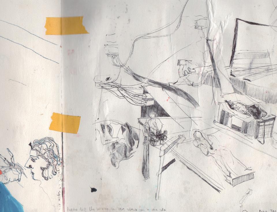 We don’t find out exactly why Laura was asked to leave the house, she just narrates it in passing, her account is now coming to an end, the real story is over. She only returns there one final time, after Elisa and Romina have already fled with the creature, leaving behind just traces and the images conjured up by them. A paddling pool filled with brackish water that trickles from a watering can and over logs, fans that buzz as they rotate, greenery all around, also painted on the walls, the sounds of the jungle, which are not like the sounds of the plains. Inside the cupboard, there is the sketch of a body that resembles a pregnant woman; there are footprints in the mud on the island at the centre of the lake, a scent that lingers on the yellow flowers. When Laura is sitting in the car later, her account is already finished, Elisa calls her for the last time, it’s done, they didn’t make it, this is no longer the real story, but it’s sad all the same. We only see Laura’s face from