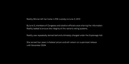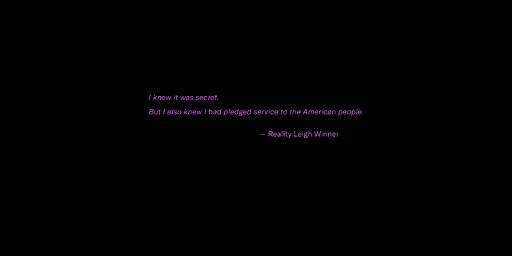 The project would thus appear, from the outset, to be anchored in true facts — or, at least, those facts as duly documented by the FBI and subsequently rehashed through multiple mass media reportage (a 60 Minutes segment, the documentary Reality Winner