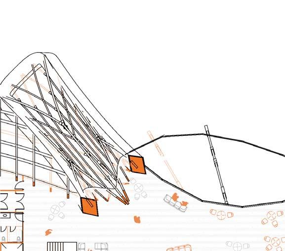 To receiving large amounts of protesters from the direction of La Rambla and Plaza Catalunya, a space above hemicycle is proposed to taking those people into the political centre where they can more freely express their political opinions to mediate relationships between politician and public as main idea of the project.
