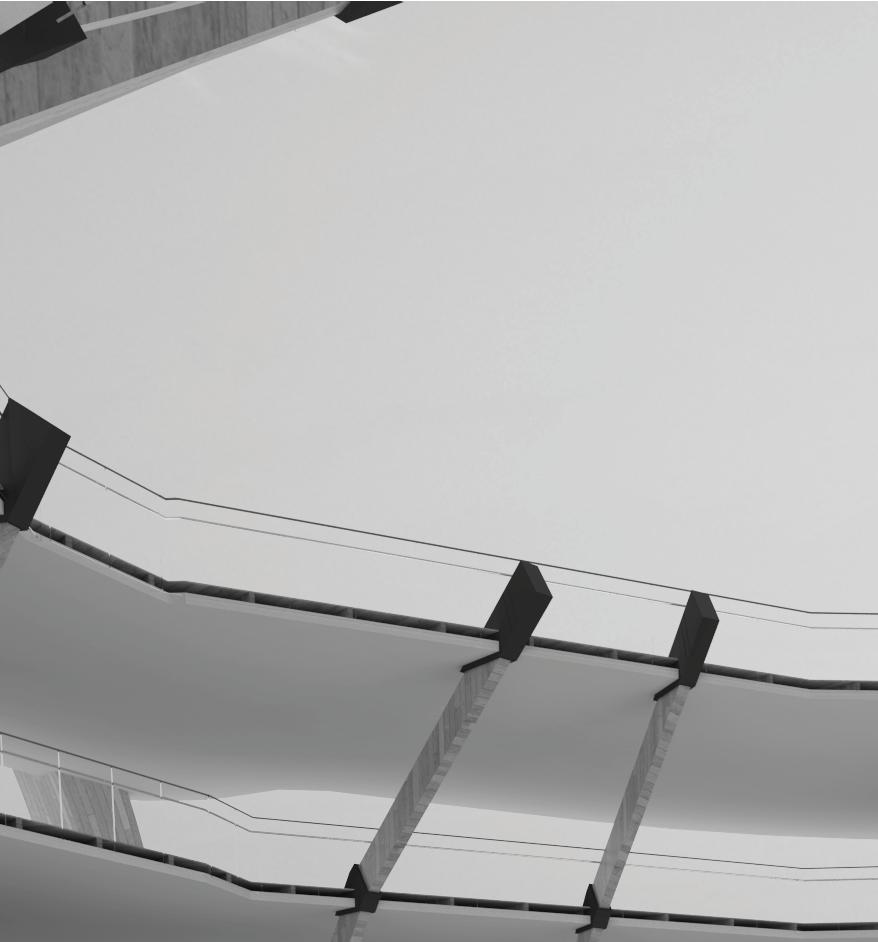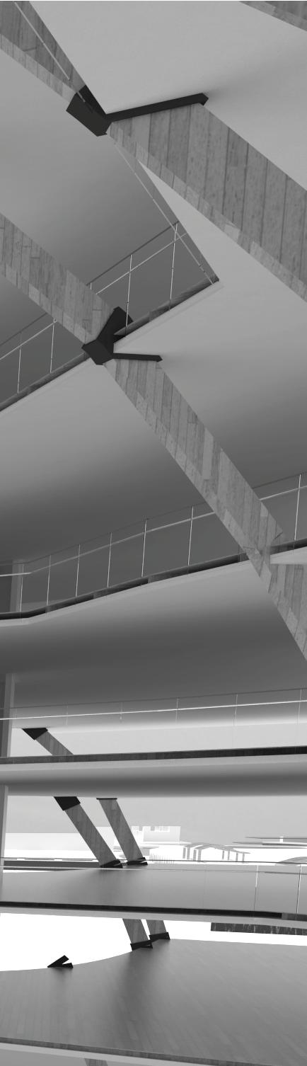 Public Support was realized through a diversity of inspirations. To begin, we studied the public space of Moll de la Fusta, understanding what was lacking within this wide open space for the inhabitants who lived nearby and for those temporarily visiting the city. From this study, we realized the disconnection between Moll de la Fusta and the current facade of the city as one major issue. Public Support attempts to reconcile this disconnection by reactivating the public space near the parliament building. By lifting the building from the ground, there is an opportunity to create a park and maintain the views out to the sea. This leads to the second realization. Water is a large component of everyone’s day to day life. Whether it is in either a leisure format or in terms of collection and distribution. Public Support identifies water as a key component in the forming of architecture. Understanding how to collect and redistribute on our own site of Moll de la Fusta came from the study of courtyards around Barcelona, and considering how we could use them on our own site. As a common architectural feature that is successful in this warm climate, we introduced natural light through courtyards, spaces for planting native plant species and a system of collecting and filtering water. Once we had a better understanding of the needs of the city, we asked ourselves what it meant to be a government building. We wanted this project to be a symbol of support for the community, a pilar of strength.