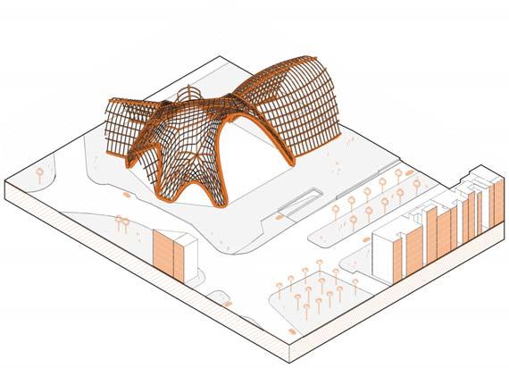 Continuing the momentum towards the end of La Rambla to provide the way for them to take to get into the hemicycle, at the same time this also can connect different levels of Moll de la Fusta which allows people from city side easily go to the water front on the roof top of the parliament as an extended plaza.