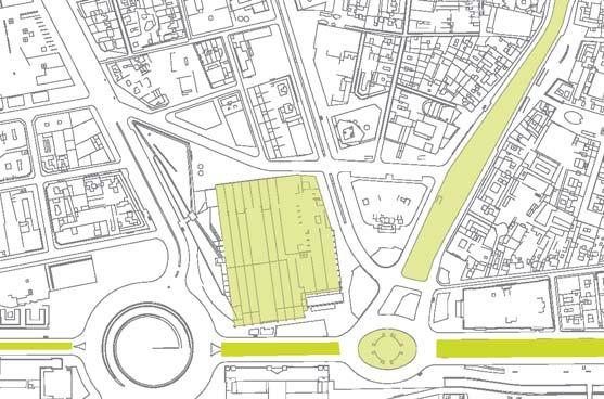 Regarding the highway on the other han front area, a circulation of public is propo over the highway and leading to the wat through the public area of the hemicycle parliament.