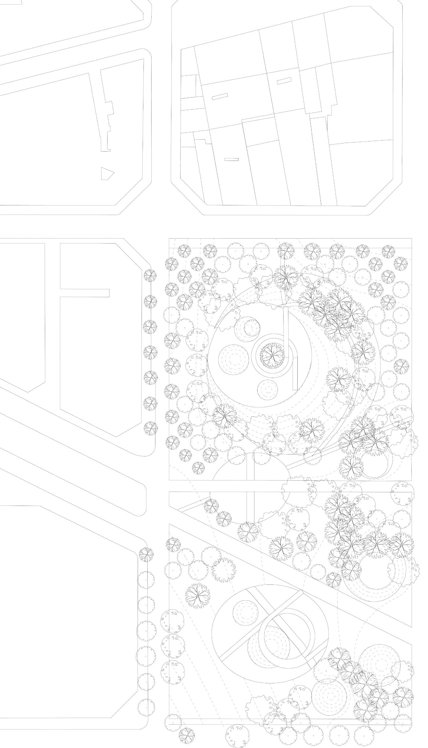 Patios are places for buildings to breathe, in the city center, we want to create a series of patios for the city to breathe. Located in Les Glories, this site is surrounded by blocks and 4 main passages crossing through. As a new city park and public space, this project aims to reveal this understanding and experience of the city, creating Exiample blocks and patios by vegetation - inverse the experience between building patio and natural patio, which establish a connection with urban context. At the same time, we use topography and vegetation as our major strategies to enhance patios in the park, bringing an experience of different scales of natural patios to the citizens.