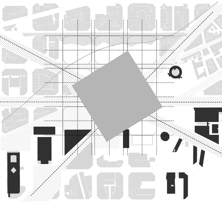 the continuity of the boulevard is cut to make way for various infrastructural projects that have attempted to solve the intersection. Diagonal Link reconnects the split boulevard through a new pedestrian urban corridor. Instead of a straight continuation of the street as it exists on either side, the new Diagonal links different zones through a morphing, meandering way. Surrounded by parkland on either side, the Diagonal Link has two faces: an open and transparent interior celebrating the dialogue between pedestrian and building inhabitant, and the solid continuous form of the exterior that reflects its varied surroundings.