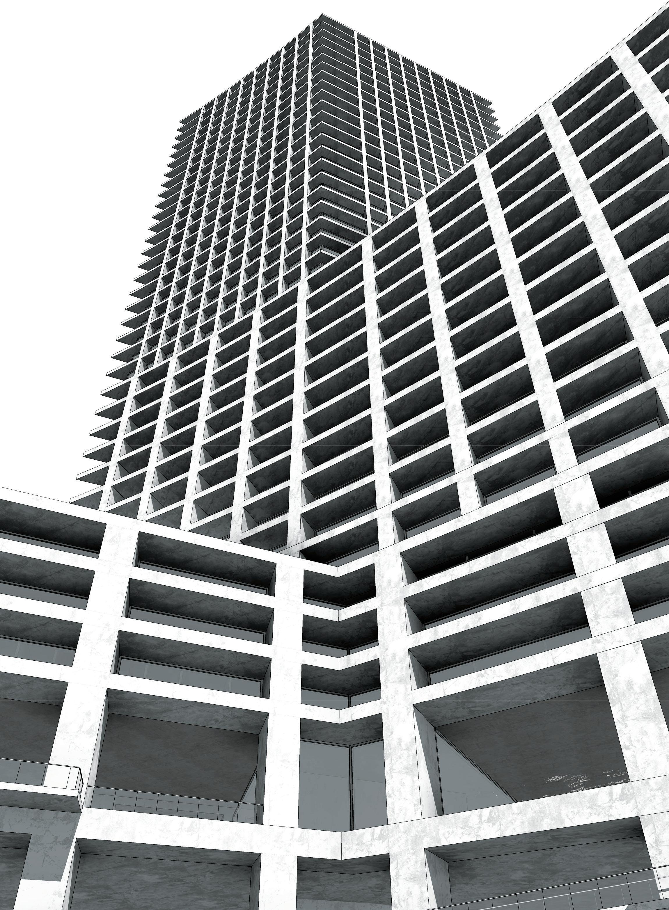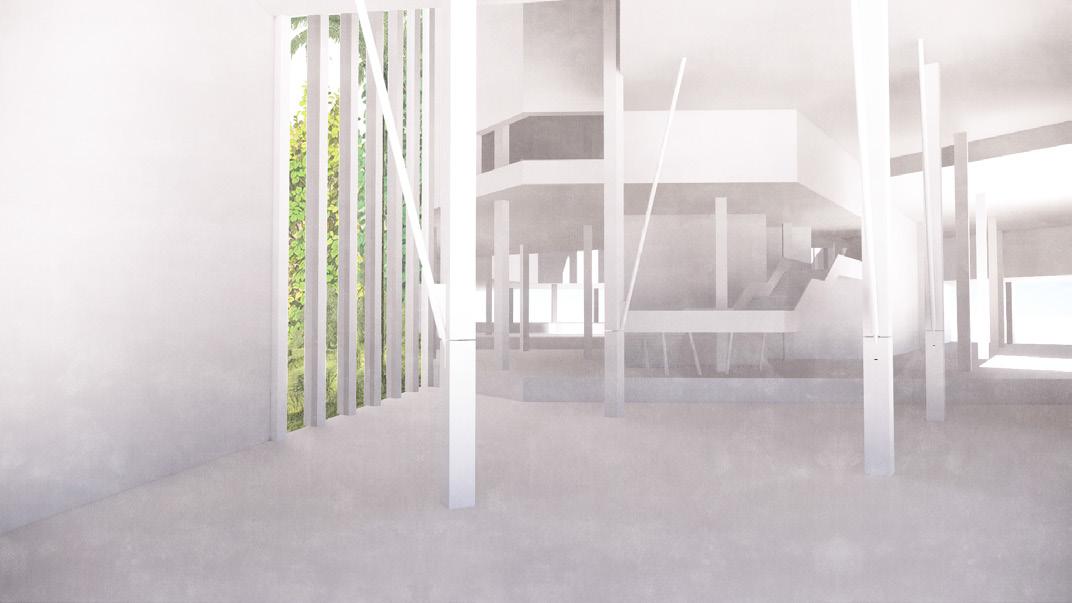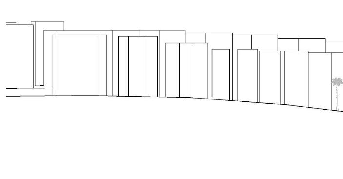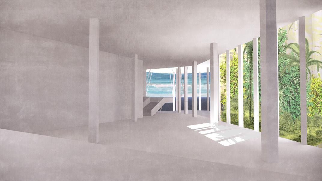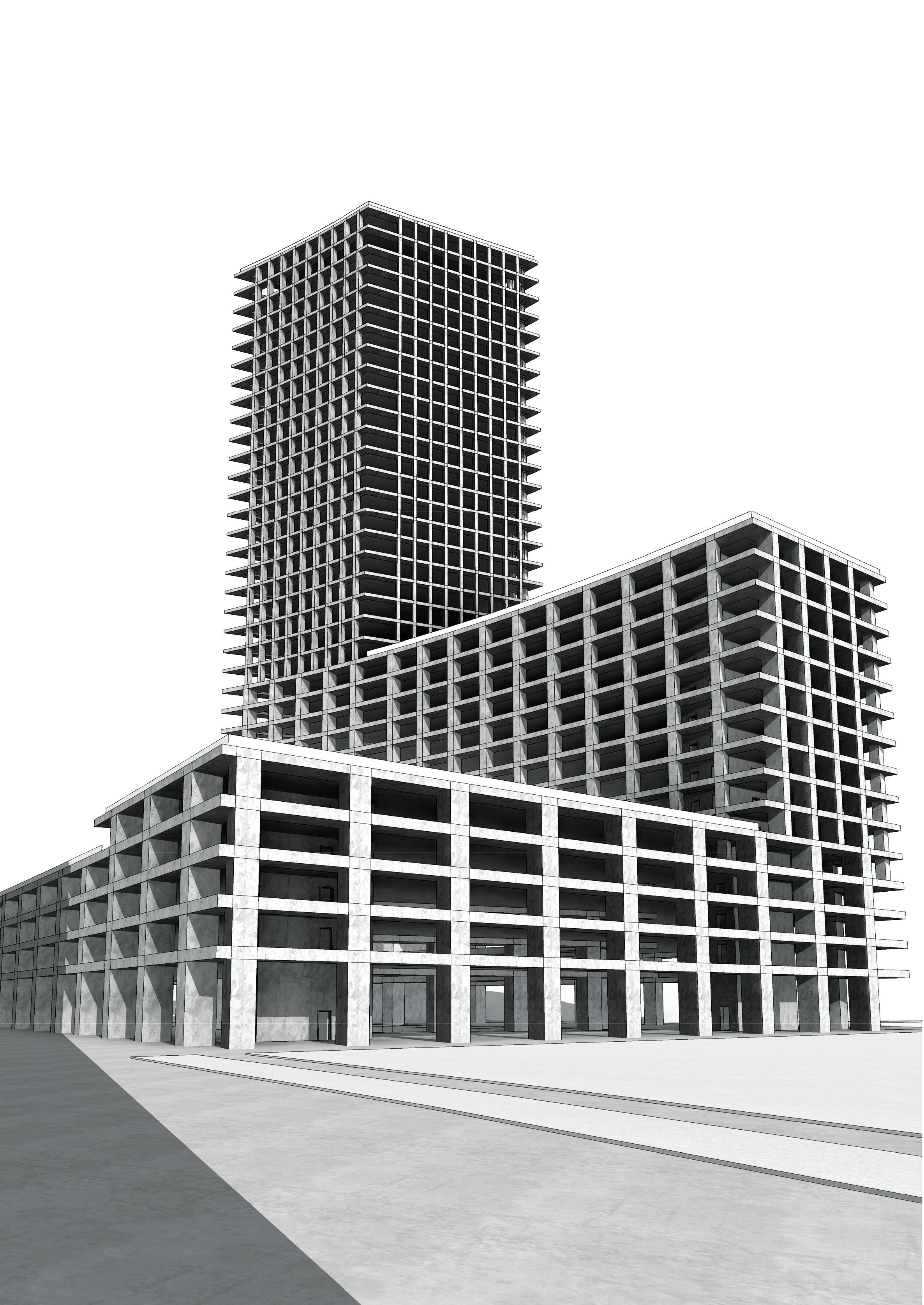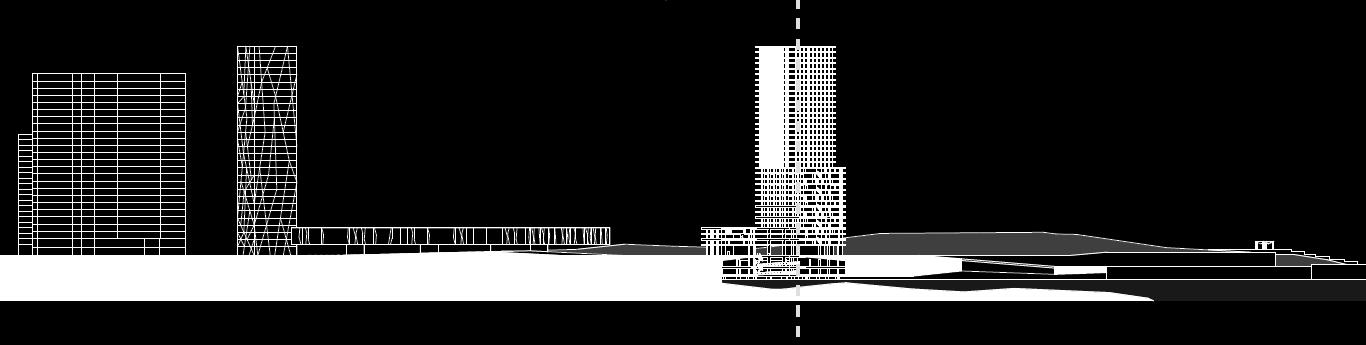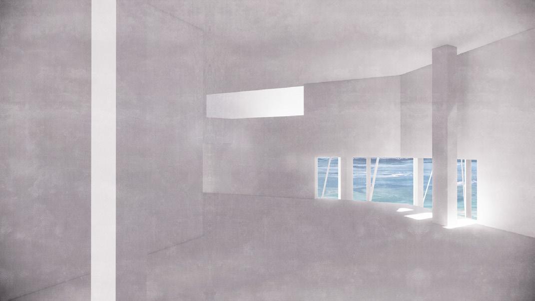 The building emphasized in [MPEG], called “Edificio Uno,” is a direct manifestation of the notion of city and sea meeting. Its geometry, setbacks, and heights are entirely derived from its urban context. Its most interesting feature is the marine cave which brings the sea into the building. Edificio Uno embodies a heavy brutalist presence which is reflective of the thick, solid rock that composing natural grottos and marine caves. Its beefy structure thins-out and breaks down as the building sets back, creating a more urban-conducive facade as the building grows.