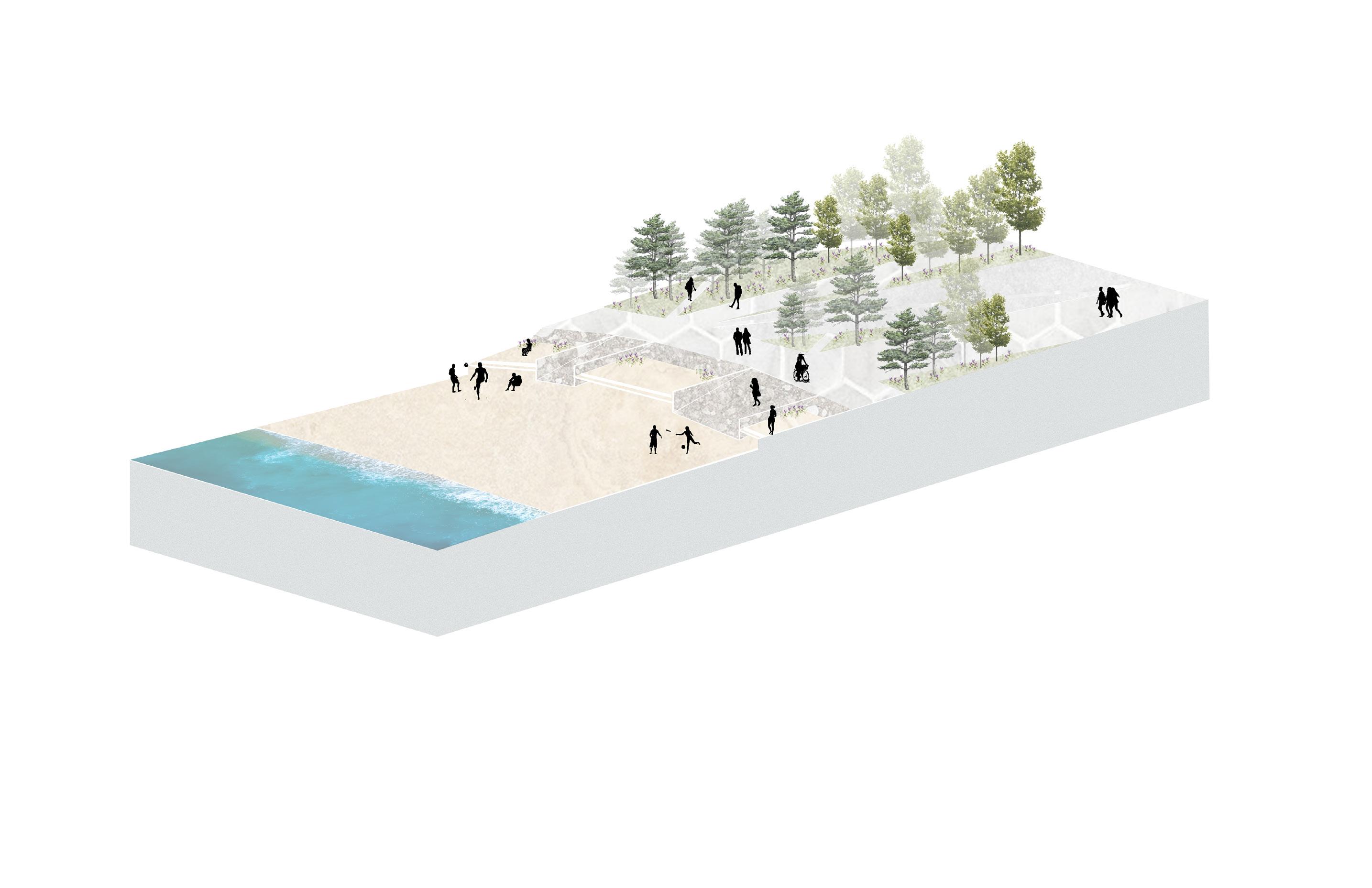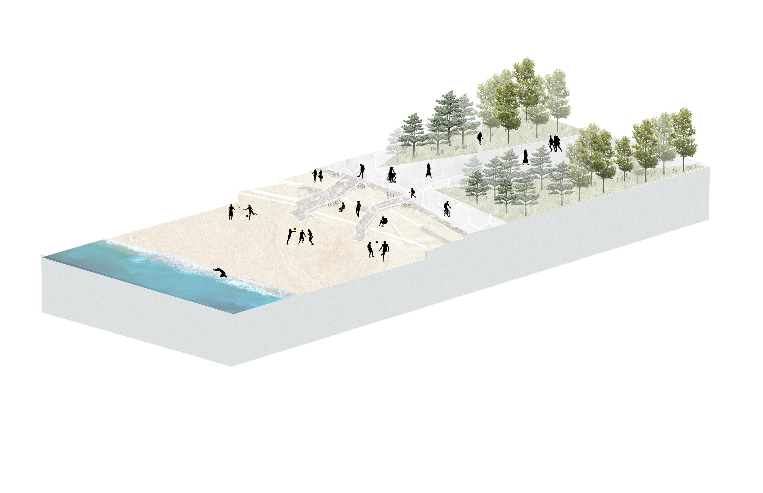 This scheme takes residential design as the main program, focusing on how the private program adapt to the environment and how to divide the public space with different open degrees when it is located on the public coastline, which can not only meet the use of residents, but also for the city to provide a good seaside space for tourists.. The scheme is based on the development of a grid system, and has fully researched and interpreted in the urban scale, street scale, and human scale. At the same time, this solution attempts to break the grid and form its own unique spatial rhythm, giving people a fresh spatial experience.