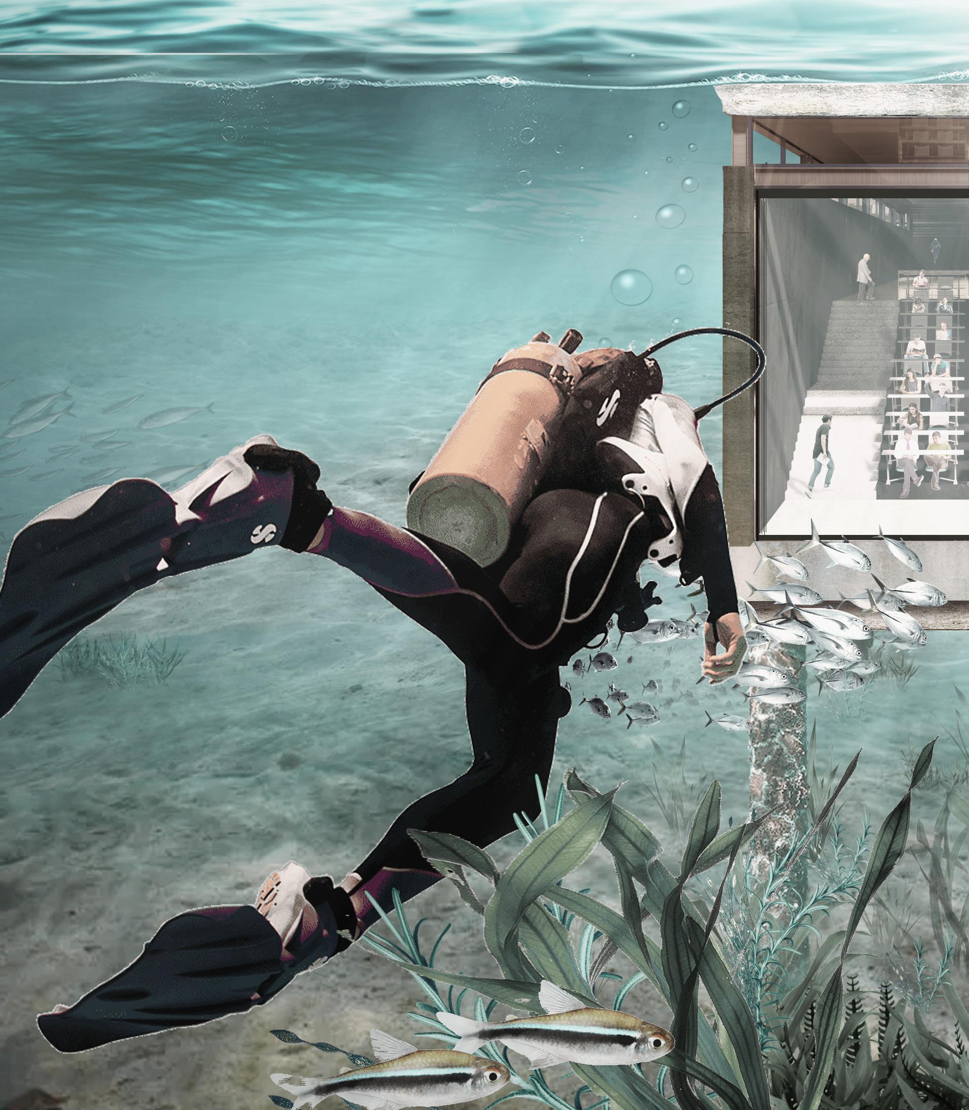 sunken landscape // functional + domestic piers and stilts // lifting all programs above